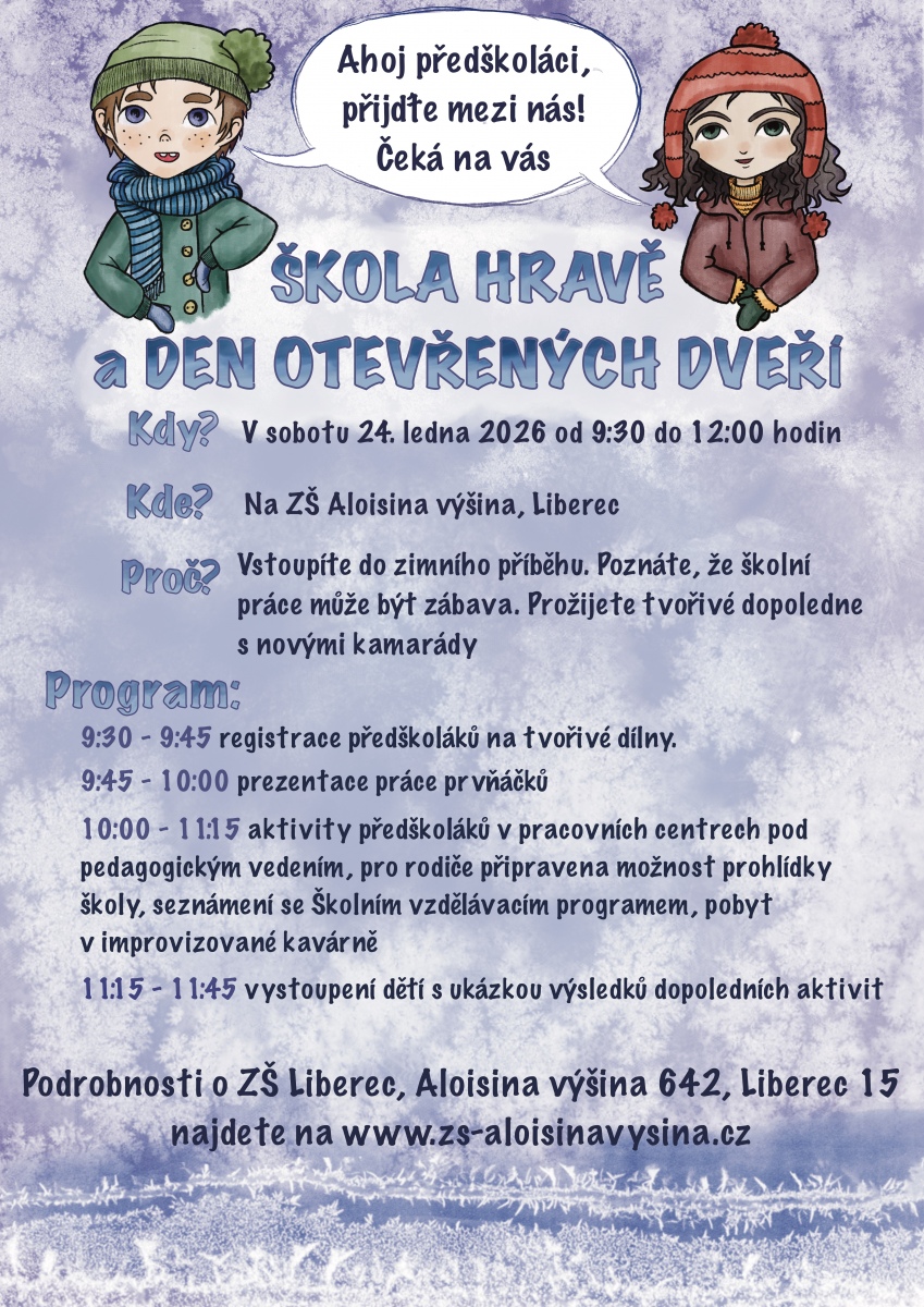 Pan ředitel Vykoukal ze Základní školy Aloisina výšina Vás zve společně s Vašimi předškoláčky na akci Škola hrou.
