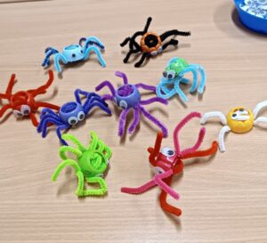Výtvarné činnosti byly zaměřeny na jemnou motoriku, práci s nůžkami, lepidle. Při výtvarce si děti cvičily orientaci na ploše, pojmenování částí těla, porozumění a zrakové vnímání.