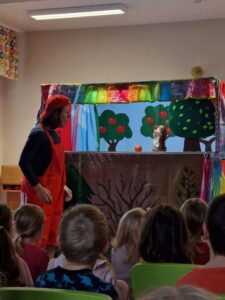Ve čtvrtek se děti seznamovaly s pohádkou „Rukavička“( obdoba pohádky Budka)