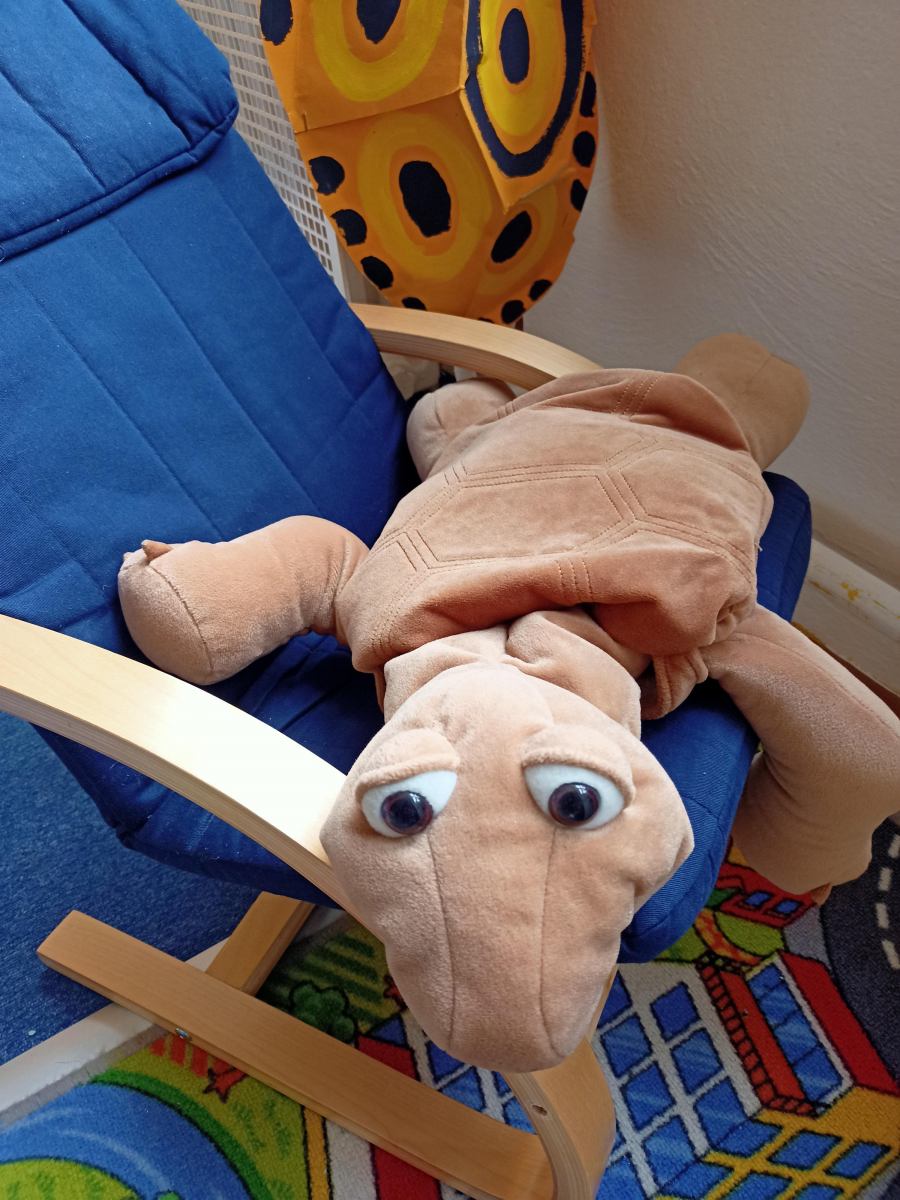 Celý den spí u nás ve třídě v košíku, a když ho chceme pozvat mezi nás, zaťukáme na něj a opatrně ho probudíme, on nás pak obohacuje svými moudrými radami a zkušenostmi 🙂