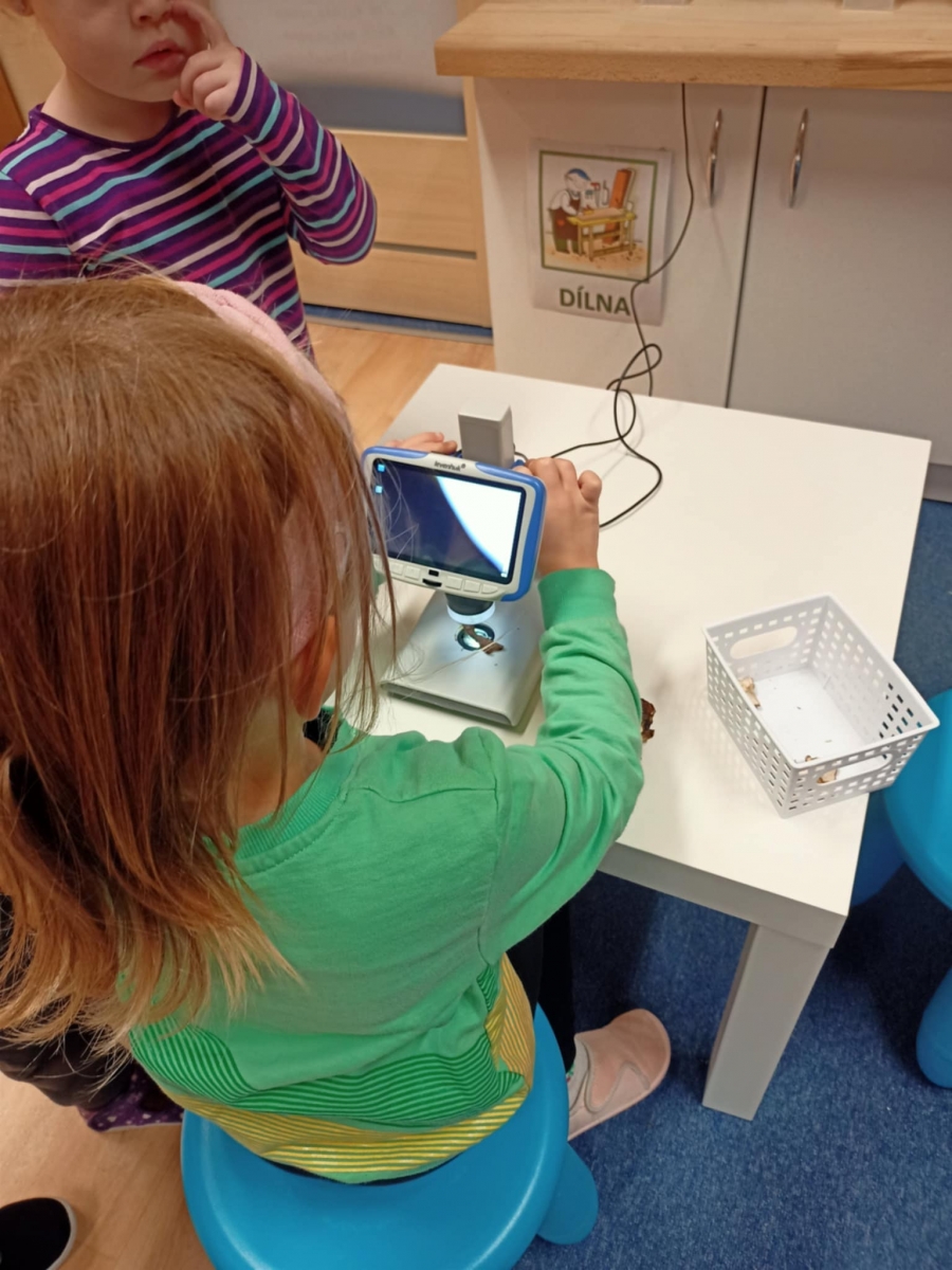 - Týdenní téma „Příroda se probouzí“ …seznámili jsme se se změnami počasí, prvními jarními květinami, zkoumali jsme půdu, prohlíželi jsme si první jarní rostliny lupou a také jsme si zahráli na malé vědce při pokusech se šiškou a hlínou.
