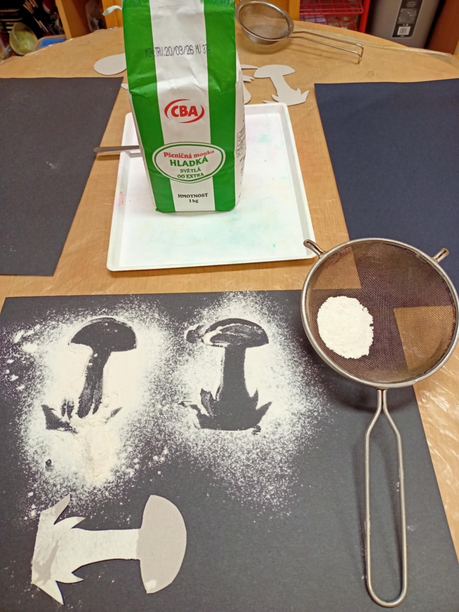 Třídily houby podle velikosti a také podle barvy, dozvěděly se, co se dá z hub všechno uvařit a pomocí obrázků sestavily postup – recept na houbové řízky.